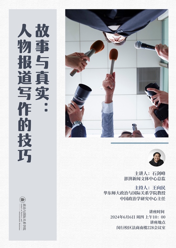 活动预告|「学术讲座」石剑峰:故事与真实:人物报道写作的技巧