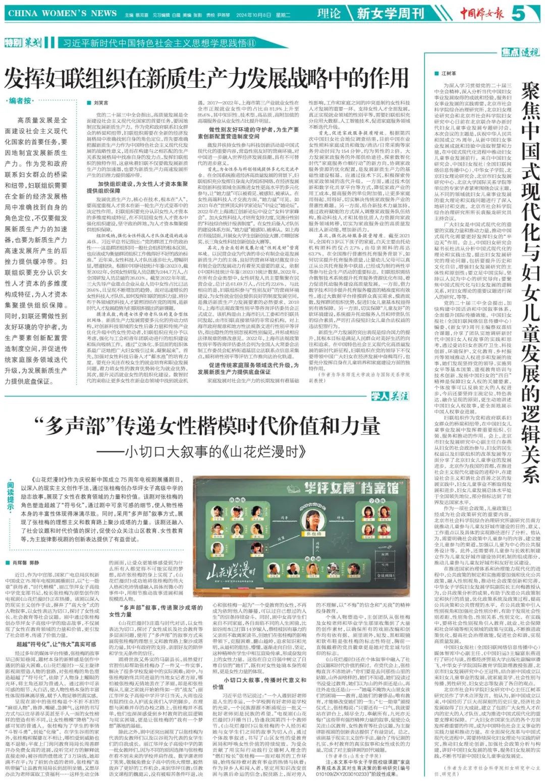 媒体视野|刘笑言副教授在《中国妇女报》发表文章《发挥妇联组织在新质生产力发展战略中的作用》