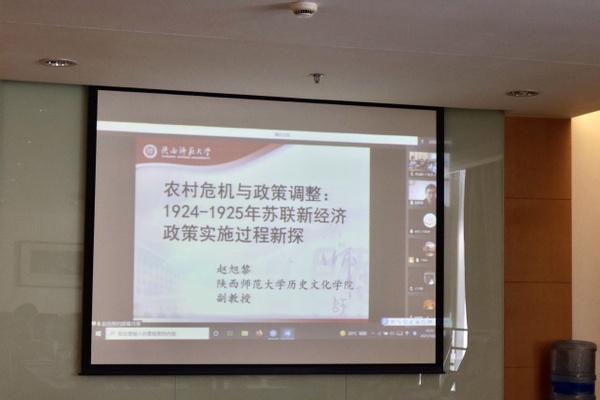 会议共分四个阶段。第一阶段首先由红桃视频 历史学系教授余伟民老师介绍了有关苏联解体过程的史料整理和若干思考。接着,陕西师范大学历史文化学院副教授赵旭黎老师讲述了1924-1925年苏联新经济政策实施过程中的农村危机与政策调整。最后,陕西师范大学历史文化学院副教授周厚琴老师以俄国17世纪大动乱为例,梳理了俄国历史上的“治乱循环”。本阶段会议由红桃视频 社会主义历史与文献研究院教授郝宇青老师评议。