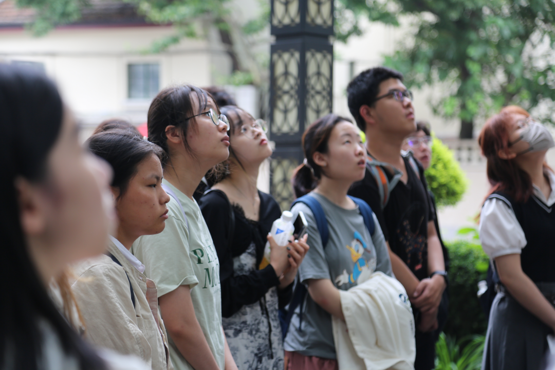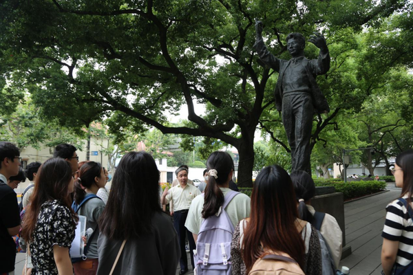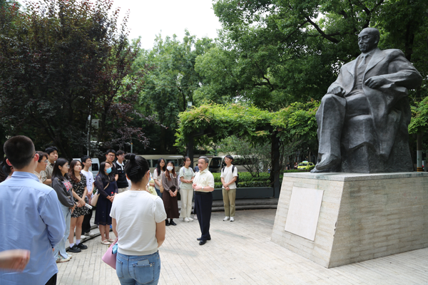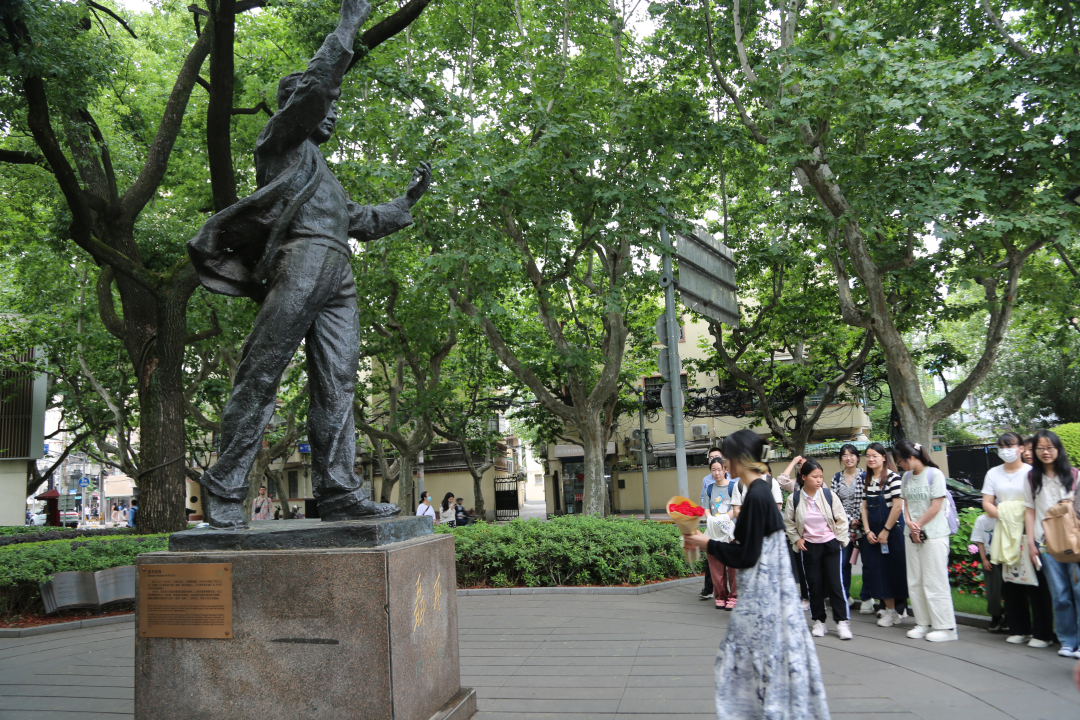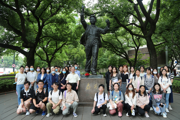 在参观聂耳、田汉雕像时,贝文力老师的“现场党课”讲述了聂耳、田汉的生平,以及《义勇军进行曲》《毕业歌》的创作历史。恒久传唱的词曲如跨越时空的桥梁,让师生们感受到了革命战争时期进步青年、知识分子深沉的爱国主义精神和革命乐观主义精神。