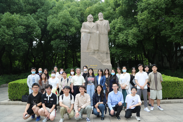 在复兴公园马克思恩格斯纪念像前上“现场党课”