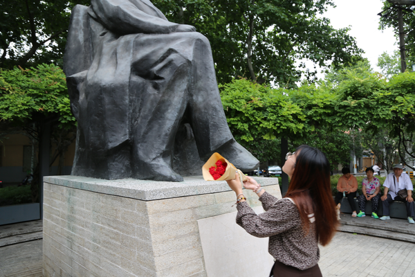 在田汉雕像前上《中华人民共和国国歌》创作史“现场党课”