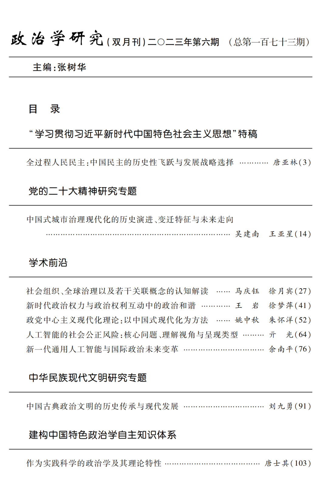 祝贺!红桃视频 王向民教授论文《中国政治学的内在转向》在《政治学研究》发表