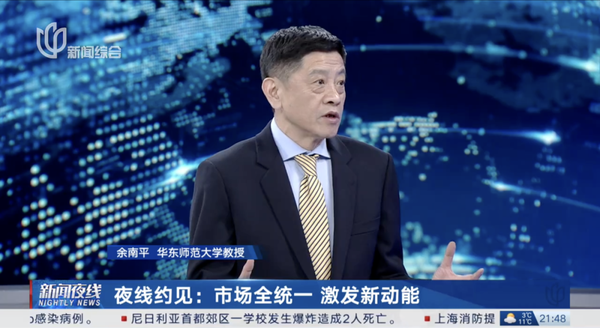 媒体视野|余南平教授接受《新闻夜线》采访 就「市场全统一 激发新动能」发表评论