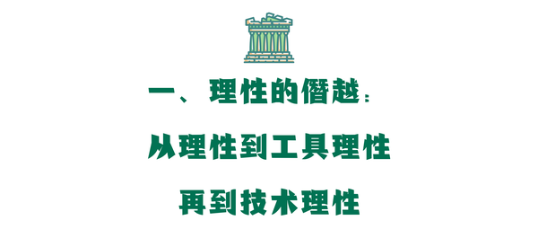 然而,到了近代,在思想启蒙运动以及工业革命的影响下,人们开始摆脱神学,走出自然,乃至站在了自然世界之外,开始以一种客观化、工具化的理性视角面对面地审视、认知改造乃至鞭策自然世界。由此,人类的思想观念第一次真正意义上的实现了以人类为中心的转向,与之相伴随的是自古希腊以来的第一哲学之基础开始动摇,以知识论为中心的理性主义、经验主义文化开始占据上风。在此意义上,“理性”概念的内涵也逐渐发生了潜移默化的转向。启蒙运动后的思想家们尽管与古希腊的哲学家们共享着“理性”一词,但其中的内涵却是已经由 “传统理性”转到了“启蒙理性”,理性的工具化面向开始显露,即以经验现象为基础,旨在通过概念的、逻辑的理性推理、计算和思考来叫人把握关于客观世界的规律,以期能够利用此规律改造客观世界。与此同时,当知识性的科学转换为经验性的技术,并爆发出巨大的社会生产力,以至于让我们每个人的日常生活都有了切身的客观体验时,这又进一步佐证了上述强于计算的工具理性之有效性。科学技术的发展、生产效率的提升与工具理性相伴相生,最终使得工具理性超越单一的自然界范畴,成为对整个人类世界的起支配作用的思维方式。正如胡塞尔所说的那样,现代人已经让自己的整个世界观受实证科学所支配,并沉浸于其所造就的繁荣之中。