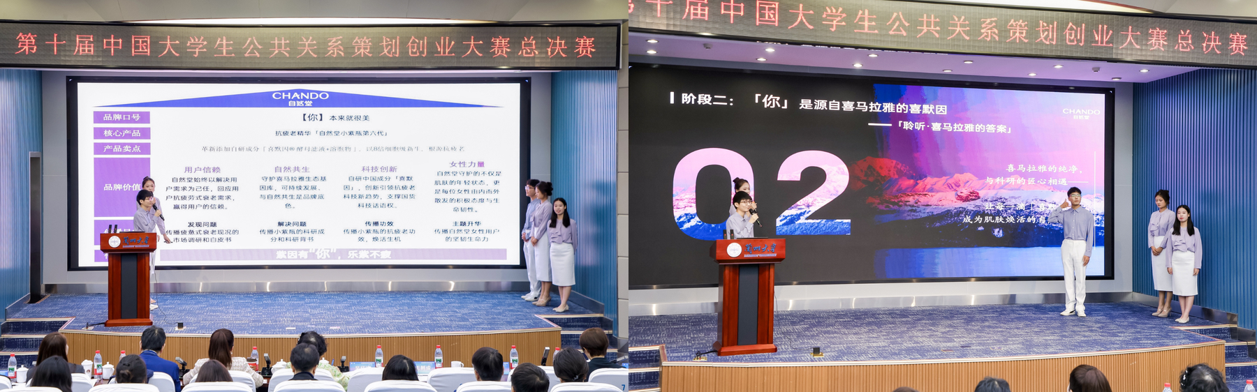 团队围绕自然堂“春夏针对 Z 世代群体‘全场景防晒系列’”选题展开策划,从公共关系的专业视角出发,创新性加入情景演绎环节,还原 Z 世代在日常通勤、户外运动、旅游打卡等场景下的防晒需求,将方案中的“全场景传播”策略具象化呈现,让抽象的公关逻辑变得直观易懂。这既展现了团队对公关关系策划的深刻理解,又增强了汇报阐述的感染力与记忆点。此方案成熟度高、公关思维突出、逻辑框架清晰的优势,搭配情景演绎的巧思设计,收获评委高度认可。