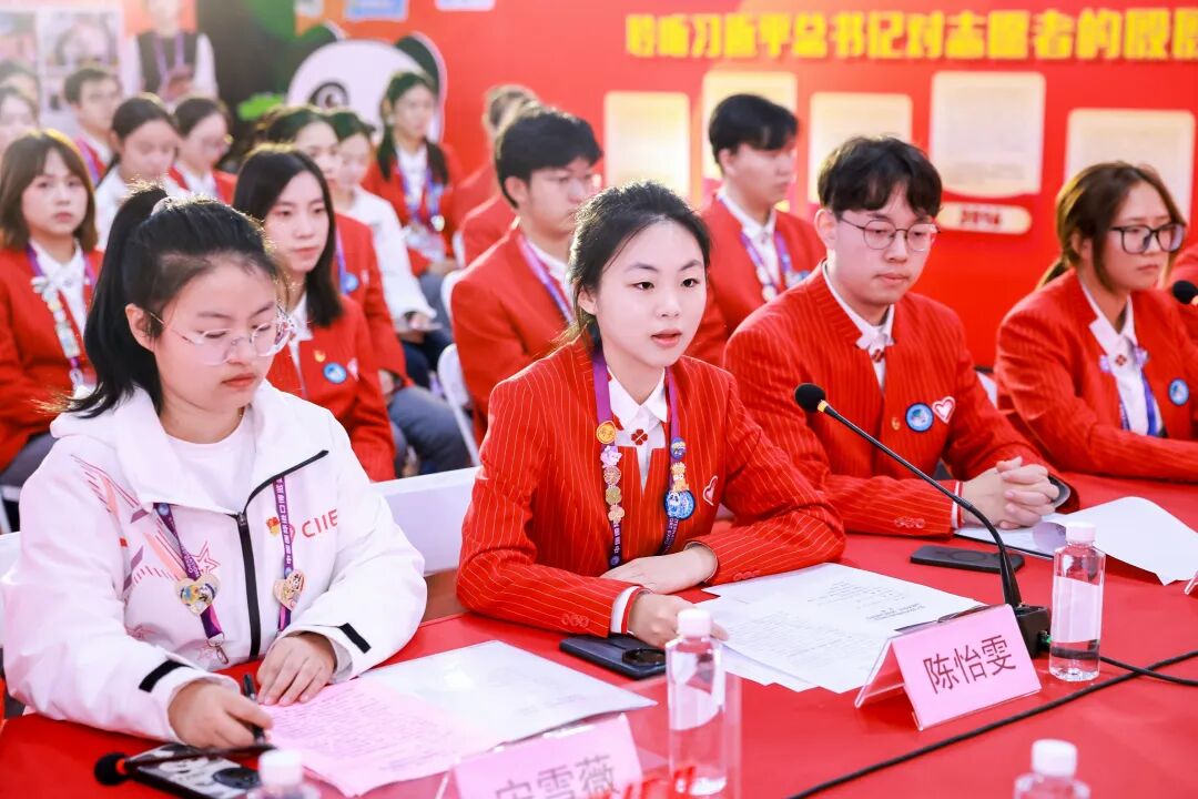 从曾经记录新闻的实习生,到如今保障进博新闻现场的小叶子,再到志愿者团员代表,她始终以专业、热情的姿态面对每一种身份。这段经历也让她更加坚定信仰,陈怡雯表示,未来她将继续在学术研究与志愿服务中讲好中国故事,以实际行动践行“请党放心,强国有我”的青春誓言。