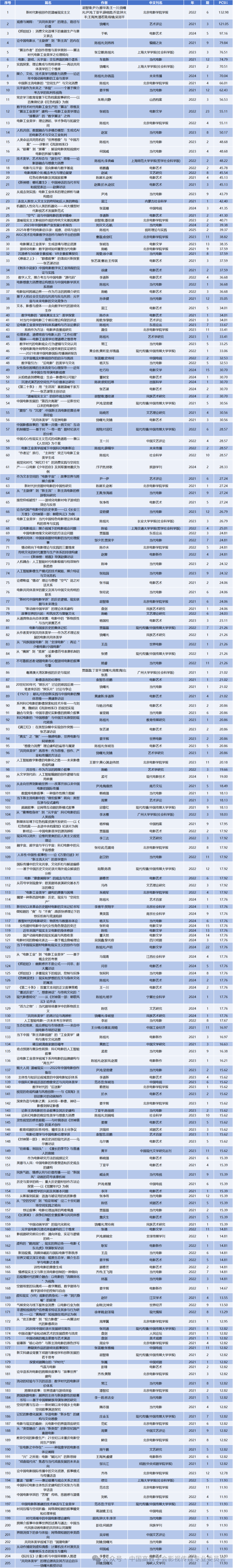 本次评价工作由中国知网下属的专业评价机构“中国科学文献计量评价研究中心(简称“知网评价中心”)”承担。遴选范围覆盖中国知网学术资源总库中收录的、发表于2021年至2025年五年间的“戏剧电影与电视艺术”领域期刊论文,共计99,913篇。为确保评价的科学性与权威性,研究团队采用文献计量学方法,以“PCSI指数”(论文引证标准化指数)作为核心定量评价指标。该指数通过对被引频次进行标准化处理,能够实现不同学科、不同年度论文之间的公平比较,PCSI指数越高,代表论文学术影响力越大。在定量排序基础上,项目组根据影视传媒领域资深专家意见,将高被引的外文翻译的译文从入围论文中删除,确保榜单的学术原创性和公信力。最终确定了PCSI指数排名靠前的205篇高影响力论文入选(因第194至205名论文指数相同,故共同入选)。具体如下: