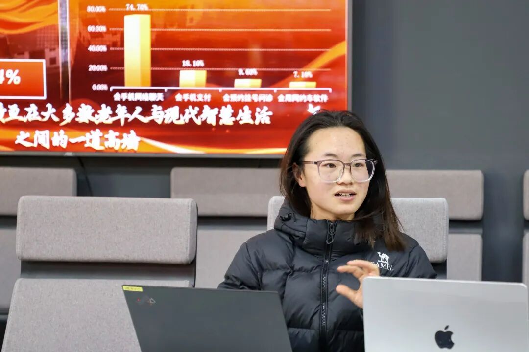 在创新创业项目分享环节,2023级政治学与行政学专业本科生陈玉婷代表本科生创业团队分享了从项目构思、资源整合、合作对接到实际运营的完整历程。她所在的团队聚焦老龄化社会需求,推出“AI回忆录”小程序与“智慧助老书籍”等项目,探索技术赋能与社会服务相结合的可持续模式。她介绍了项目组如何利用校内外资源推动项目落地,展现了学生团队从“参赛”到“做实”的成长路径。