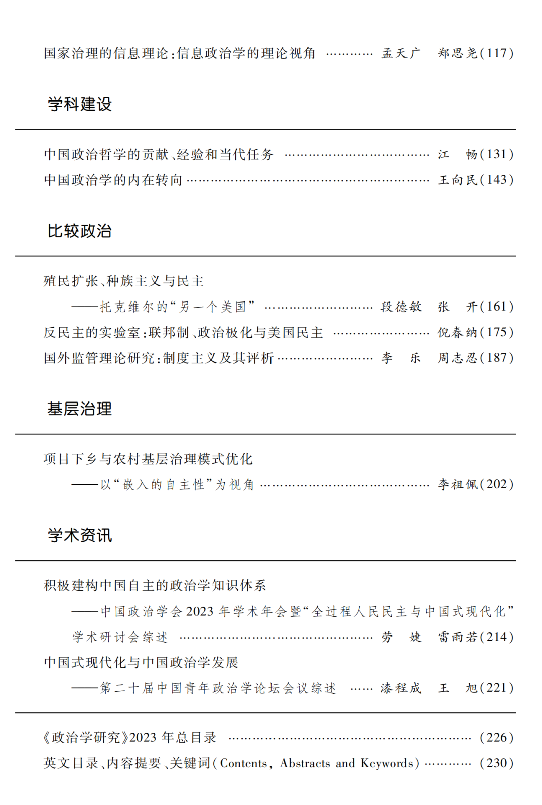 祝贺!红桃视频 王向民教授论文《中国政治学的内在转向》在《政治学研究》发表