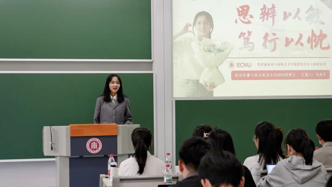 政治与国际关系学院第三届研究生会轮值执行主席陈若妍向大会作工作报告。她重点回顾了过去一年院研究生会在提升党性修养、优化内部建设、引领学术交流与策划文体活动中的扎实工作成果,同时希望新一届研究生会能够继续秉承“全心全意服务同学”的宗旨,聚焦同学们的切实需求,用心用情解决难题。